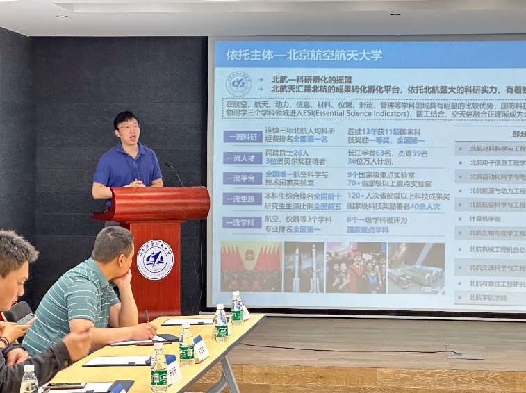 北航天汇副总经理袁强详细介绍了北航天汇孵化器的建设发展情况和孵化服务体系,希望和北航校工会一起,依托协会平台帮助青年教师了解科技成果转移转化流程、对接成果应用场景、精准链接产学研用需求,助力科技成果顺利落地转化。