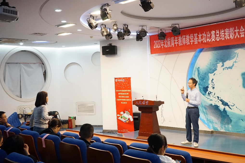 11月9日下午,2022年北航青年教师教学基本功比赛总结表彰大会暨北航青年教师发展协会成立仪式在人文社会科学学院(公共管理学院)人文讲堂举行。校工会主席、副校长刘树春、副校长吕卫锋出席了大会。相关职能部处负责人、各二级单位工会主席、青年工作委员、教代会青年工作委员会委员、北航青年教师发展协会成员以及青教赛校赛获奖教师代表共计50余人参加了会议。