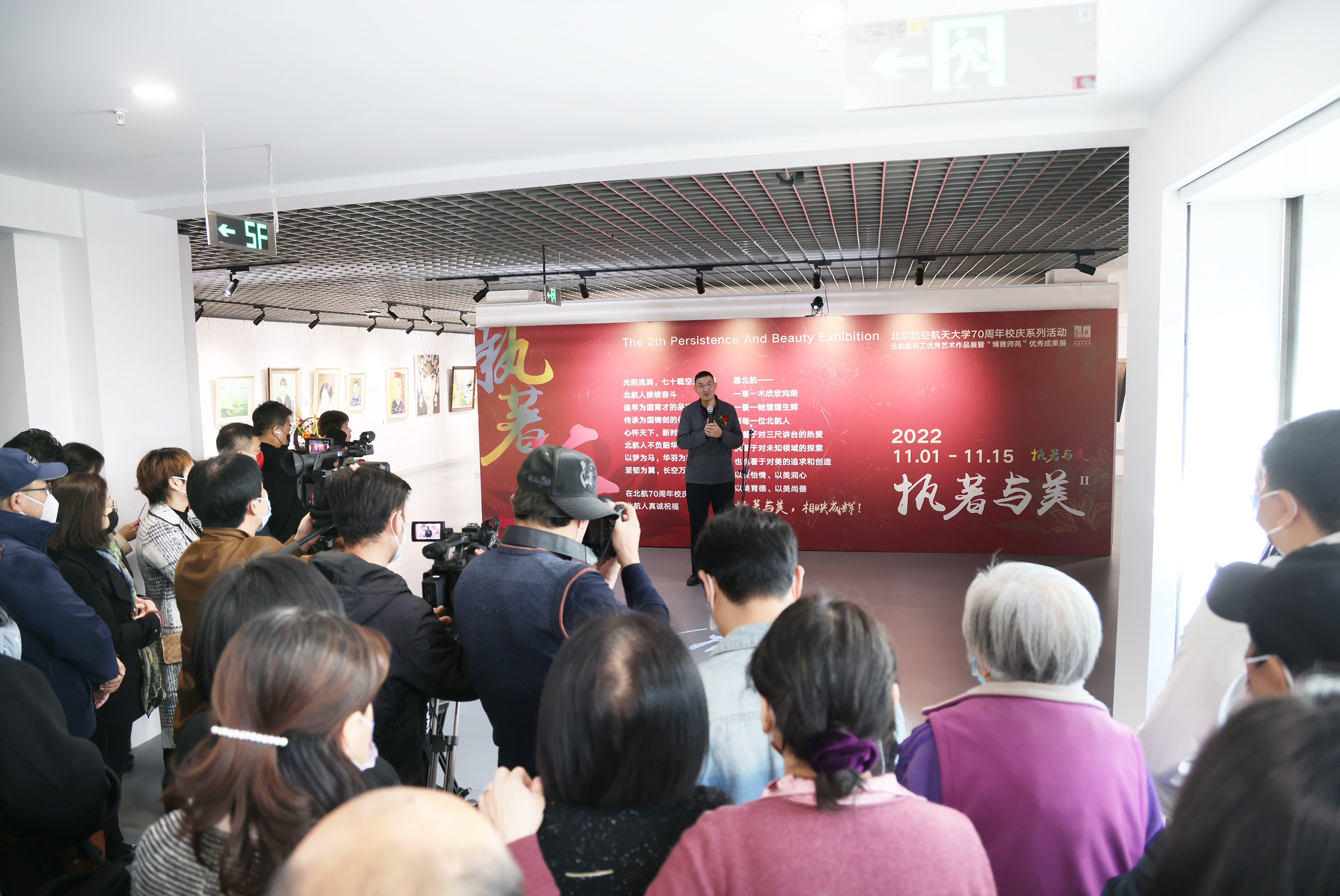 程波在开幕式致词中提到,在党的二十大胜利召开,北航喜庆建校70周年之际,学校迎来了校庆系列活动:“执著与美Ⅱ—北航教职工优秀艺术作品展暨‘博雅师苑’优秀成果展”两校区联展。从展出的教职工艺术作品中不仅能够感受到美的享受,更能深切体会到北航教职工在科研、教学、管理服务岗位上兢兢业业的同时,对精神之美、生活之美、创作艺术之美的不懈追求,汲取艺术精神和学术力量,不断激发空天报国的初心和为党育人、为国育才的情怀。希望校工会将两校区“博雅师苑”教职工兴趣课堂越办越好,为丰富两校区教职工的业余文化生活、提升学校美育工作格局、推动学校双核发展做出更大贡献。