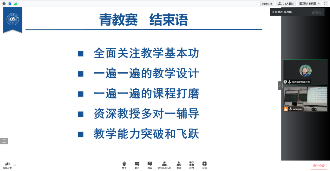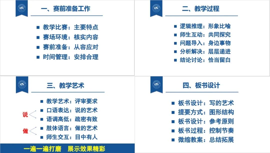 经过此次青教赛专题培训,青年教师们对如何达到更好的课堂展示效果和教学效果有了进一步的认识,对教学艺术的理解进一步加深。