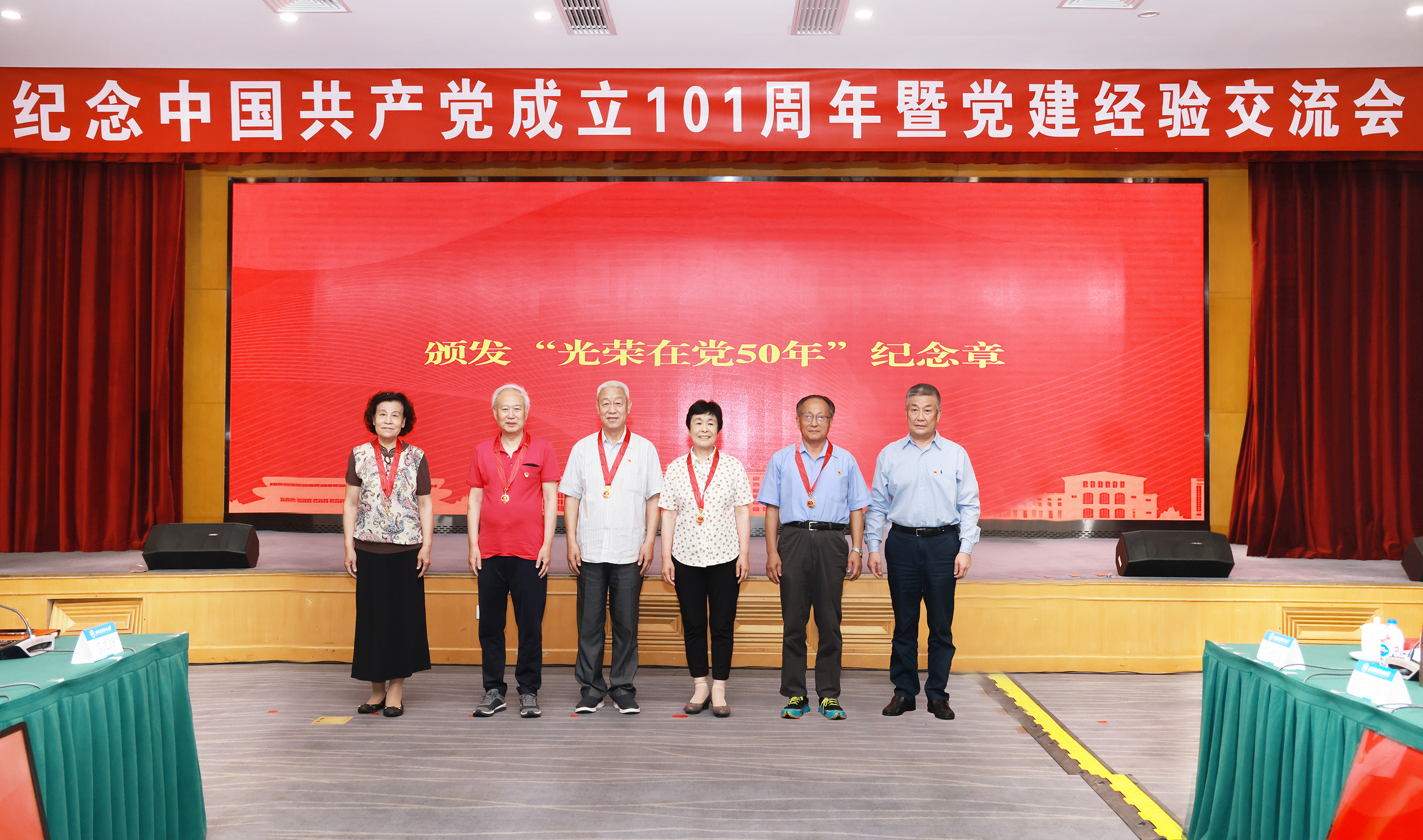 校党委书记赵长禄为老党员代表颁发“光荣在党50年”纪念章