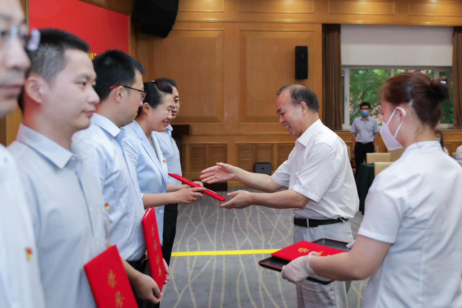 赵长禄在讲话中代表学校党委,向全校各级党组织和广大共产党员致以节日的问候。他指出,101年来,中国共产党团结带领中国人民成就了百年大党的恢弘气象,胜利实现了第一个百年奋斗目标,在中华大地上全面建成了小康社会,正意气风发向着全面建成社会主义现代化强国的第二个百年奋斗目标迈进。近年来,学校党委坚持以习近平新时代中国特色社会主义思想为指导,以党的政治建设为统领,全面加强党的各项建设,以高质量党建引领学校事业高质量发展,管党治党、办学治校“硬能力”和“软实力”不断提升,学校党委被党中央表彰为“全国先进基层党组织”,入选教育部第三批“全国党建工作示范高校”培育创建单位。赵长禄表示,今年上半年,疫情形势复杂,全校各级党组织和师生党员闻令而动、尽锐出战,一大批师生党员克服疫情困难,带头在教学科研中持续奋战、创造佳绩,大家以实际行动充分展现了共产党人的责任担当和精神品格。