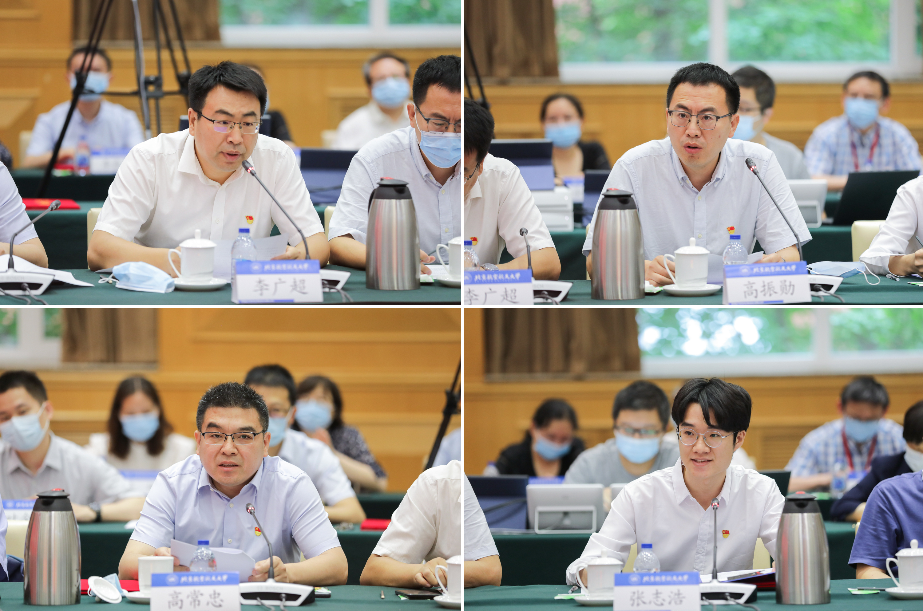 会上,“标杆学院”建设单位代表、物理学院党委书记李广超,样板支部、“双带头人”教师党支部书记工作室建设单位代表、航空学院流体所教师党支部书记高振勋,优秀主题党日活动获奖代表、后勤党委学院路闭环党支部高常忠,优秀主题党日活动获奖代表、电子学院本科生第二党支部张志浩分别作了交流发言,结合单位工作和学习实际,以生动的实例、鲜活的抗疫故事和平实的语言介绍了本单位和师生个人开展党建活动的行动、思考与感悟。物理学院党委强化政治功能,把好学院发展方向舵,党政协同推动各项工作;航空科学与工程学院流体所教师党支部围绕中心抓党建,带动教师潜心育人、科研攻关;后勤党委闭环党支部在疫情防控中发挥党组织优势,守护校园安全和师生健康;电子信息工程学院本科生第二党支部接力传承电磁精神,发挥党员纵向“传帮带”作用,团结引领学生共同成长。