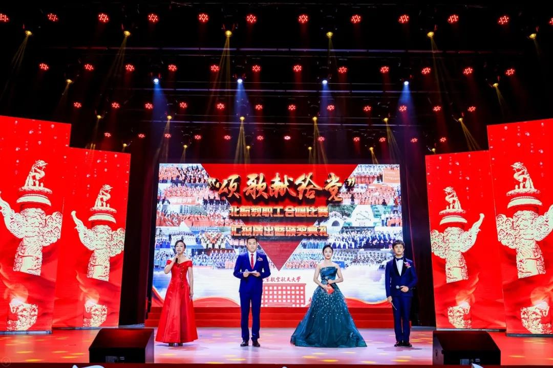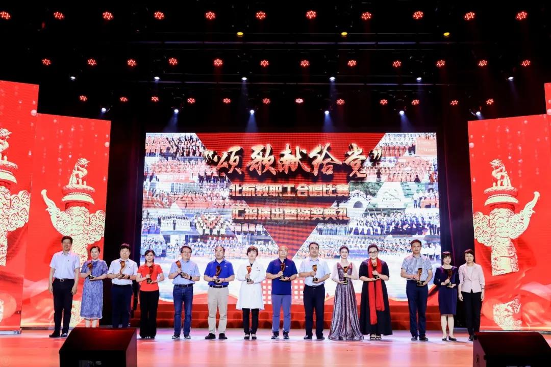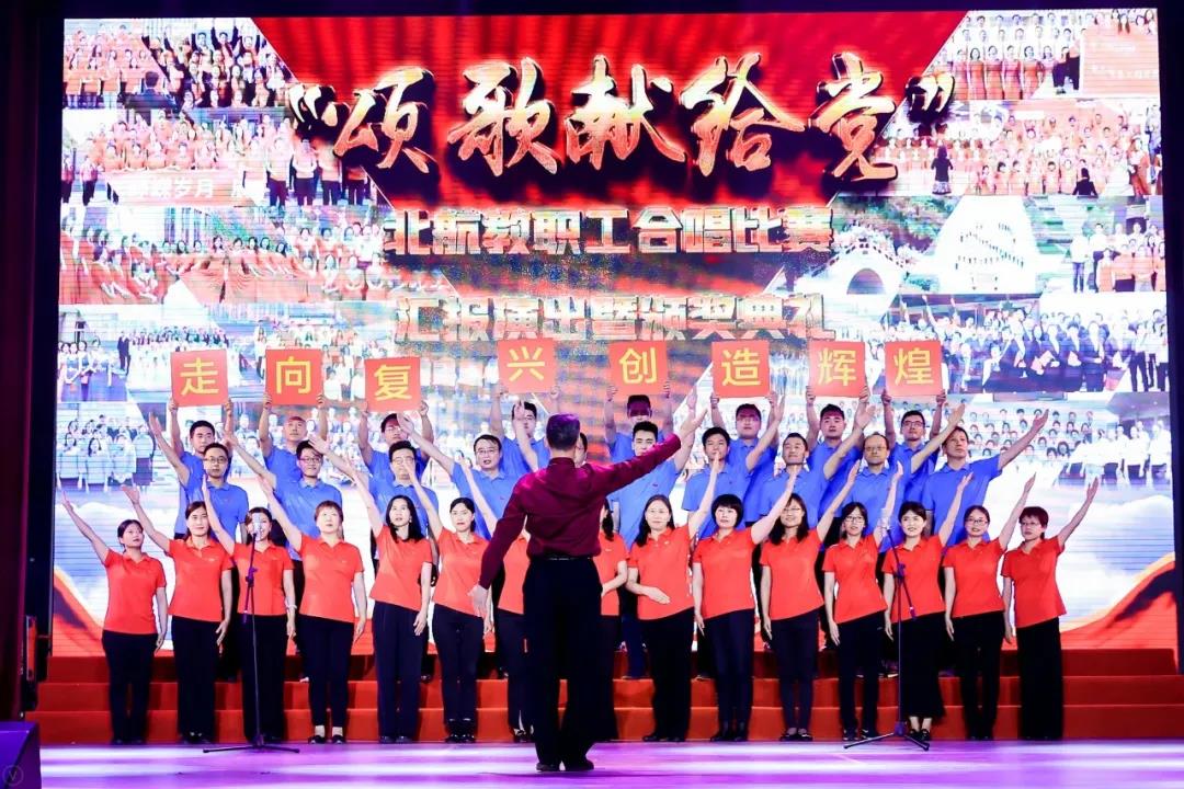 北航新闻网6月27日电(记者 王晴 通讯员 纪秋荷/文 田文浩 李淼/摄影)6月26日,由校工会主办的“颂歌献给党”——2021年北航教职工合唱比赛汇报演出暨颁奖典礼在晨兴音乐厅举行。校党委书记曹淑敏,校长徐惠彬,全体在京校领导,各学院、部处党政领导,各部门工会主席出席演出现场。此次活动也是“党旗红 空天蓝”北航首届艺术节的重要活动之一。