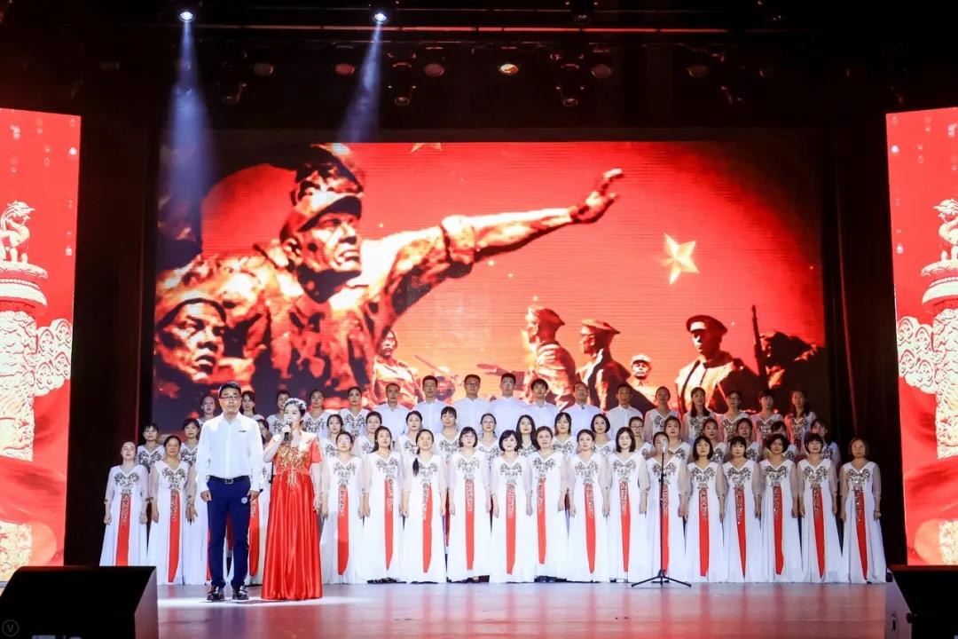 演出最后,全体出席校领导和演员观众齐声高唱《没有共产党就没有新中国》,把整场汇演推向了高潮,唱出了中国共产党领导中国人民争取国家独立、民族解放、人民幸福的历史必然,唱出了北航人对中国共产党的衷心拥护和听党话、跟党走的坚定信念,激情澎湃的歌声响彻晨兴音乐厅。