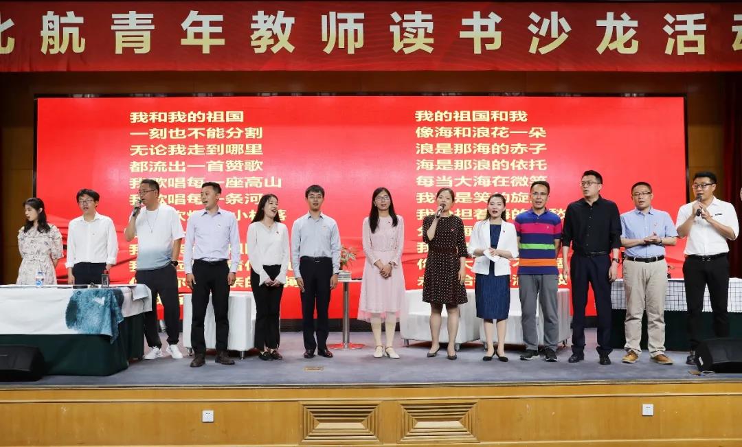 第四篇章中,校工会副主席武洋和马克思主义学院青年教师曹镇玺共同演绎了《觉醒年代》中陈独秀和李大钊相约建党的经典场景,激励青年教师勇做青年中的先驱者、引路人,将自己的青春投入到党的伟大事业中,激流勇进,砥砺前行。在活动结尾,所有青年教师代表一同登台,齐唱《我和我的祖国》,拉下本次读书分享会的帷幕。