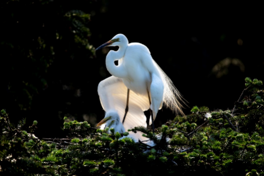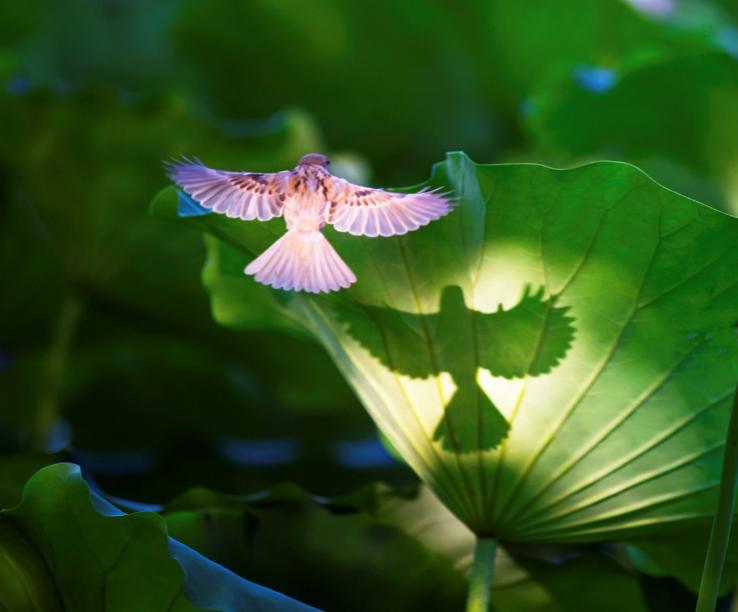 《荷上雀影》