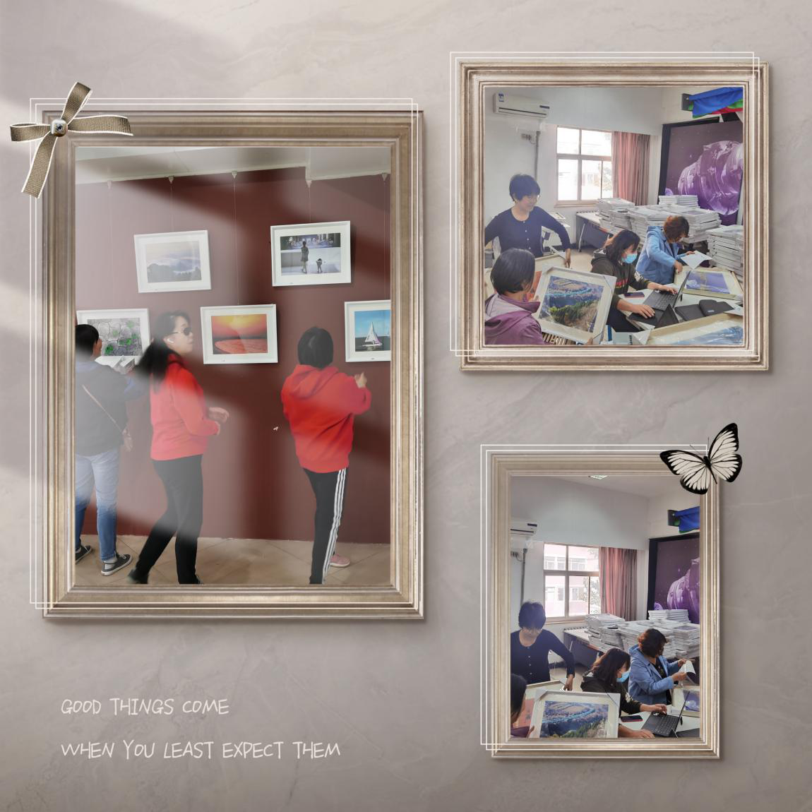 北航摄影协会的部分老师正在筹备布展,使全部摄影作品顺利展出。