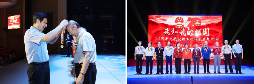 演出前,徐惠彬校长向在2019年获得由中共中央、国务院、中央军委颁发的“庆祝中华人民共和国成立70周年”纪念章代表颁发了奖章,代表学校党委向建国初期参加革命工作、在本职岗位上做出突出贡献的获得“庆祝中华人民共和国成立70周年”纪念章的教职工表示慰问。