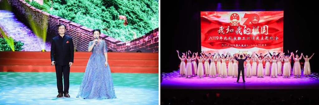 北航新闻网9月30日电(通讯员 张芳/文 记者 邸白鹭 郑春杰/摄影)9月29日,在新中国即将迎来七十华诞之际,由校工会主办,宣传部协办的“我和我的祖国”——2019年北航教职工迎国庆主题晚会在晨兴音乐厅举行,来自20多个部门工会的300余名教职工参加了演出。