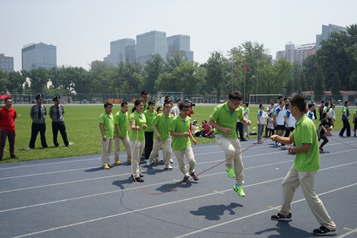 比赛项目于9:45正式开始,校党委常务副书记张维维为男子100米决赛项目发第一枪,场面顿时沸腾起来。本届运动会以“忆童年,快乐当道,青春正好”为主题,精选了满载儿时美好回忆的竞赛项目,在随后进行的滚铁环、托球跑、毽球接力、沙包攻守大战、跳大绳等趣味项目中,各单位教职工集体合力,精诚团结,妙趣横生;在100米飞人大战、400米、实心球、跳远、4*100米混合接力等竞技项目中,广大教职工矫健的身手也展现得淋漓尽致;没有竞技项目的教职工纷纷参与到“嘉年华闯关专区”计时投篮、跳绳、沙包掷准等活动中,真正体现运动的普惠性和参与性,比赛于11:45全部结束。