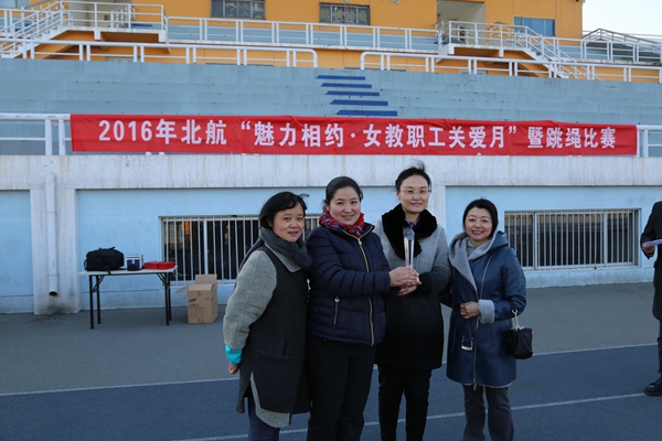 为庆祝“三八”国际劳动妇女节,让我校女教职工度过一个健康、和谐、快乐而有意义的节日,校工会于3月9日下午举行了2016北航“女教职工关爱月”系列活动之跳绳比赛。报名参加比赛的有22个单位的100余位女教职工。