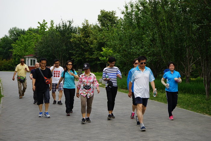 16:00,北航教职工陆续乘坐地铁抵达位于奥林匹克森林公园南门的会务点,领取通关卡后,沿着公园3公里步行道展开阔步走。活动当天气温凉爽宜人,公园景色秀丽,锻炼的人群浩浩荡荡,北航教职工也受到感染,自觉融入运动的海洋,欢声笑语洒满一路,暂时抛却工作生活中的压力。