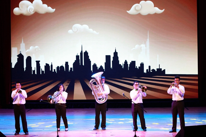 2015年,校工会精心打造了教工民乐坊,由来自交通科学与工程学院的邵琳,科研院的林欧雅,财务处的杨东方、刘馨阳,宇航学院的常方圆,可靠性与系统工程学院的隋毅共同组成,他们用新民乐展现着北航教工的新面貌、新形象。在昨晚的演出中,教工民乐坊与学生民乐团在著名二胡演奏家、国家一级演员高扬老师的指挥下演奏了《江南情韵》、《台湾组曲》、《在那东山顶上》、《夜深沉》等民乐曲目,并运用电子音乐配器,重新演绎了具有时尚韵味的《梦里水乡》,乐团曲风清新,形象靓丽,赢得了观众一致好评。