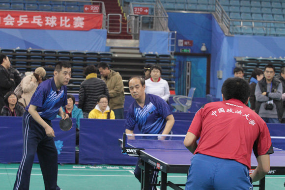 在北大邱德拔体育馆内,运动员一起讨论战术配合,熟悉场地,全力备战。比赛开始,运动员们都全身心的投入到比赛中,大家团结协作,互相照应,充分发扬了敢打敢拼的精神。我校教职工运动员把一滴滴汗水挥洒在乒乓球台上,把一份份激情环绕在体育馆内。通过比赛让大家看到我校教职工运动员积极向上、努力进取的精神,也激发了教职工运动员爱校、荣校的集体荣誉感。在校庆60周年之际,充分展示了我校教职工运动员良好的精神面貌,并在比赛中赛出了风格、赛出了水平。尽管参赛院校队伍中不乏一些退役专业运动员,但我校仍以顽强拼搏的斗志进入到前16名。