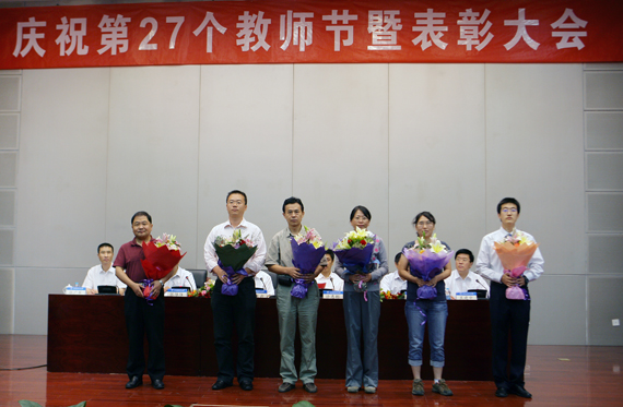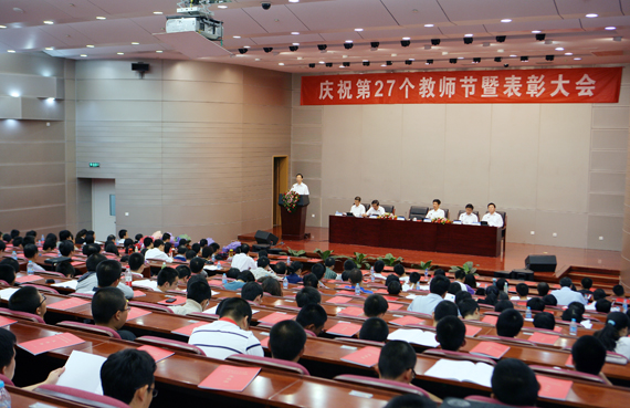 胡凌云书记在庆祝第27个教师节暨表彰大会的讲话中,代表学校党委与行政向受表彰的先进个人和先进集体表示热烈的祝贺和崇高的敬意,向全校广大教师和教育工作者致以诚挚的问候和良好的祝愿。他指出,在过去的一学年里,全校教职员工紧密围绕学校中心工作,扎实推进教育教学改革,切实提高人才培养质量,不断提升科技创新能力,大力推动产学研用结合,着力促进文化传承创新,在教育、管理、服务等方面都取得了丰硕成果。