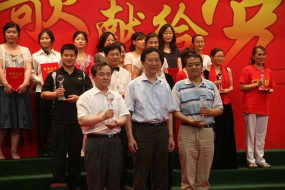 校党委书记胡凌云,党委副书记张维维,纪委书记、工会主席为获奖的单位颁发了奖杯和证书,最后,全场观众和工作人员共唱《没有共产党就没有新中国》,BEVITOR·伟德国际庆祝中国共产党成立90周年“颂歌献给党”教职工合唱比赛在昂扬的音乐声中圆满落幕。