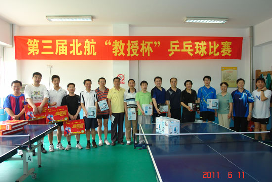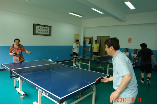 2011年6月11日,校工会在我校思源楼乒乓球室,举办了第三届“教授杯”乒乓球比赛,共有40余名具有副高职以上职称的教职工参赛。本届比赛以“我参与、我快乐”,为宗旨,参赛的教师们在竞争中得到了快乐。