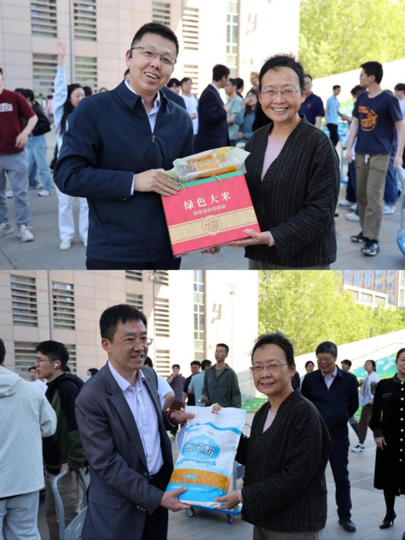 随后,宋丽静主席一行来到新主楼大台阶广场,为学校教职工代表们发放节日慰问品,将北京市教育工会的关怀送到教职工手中,她与一线教职工代表亲切交流,并与大家合影留念,现场洋溢着温馨浓厚的节日氛围。
