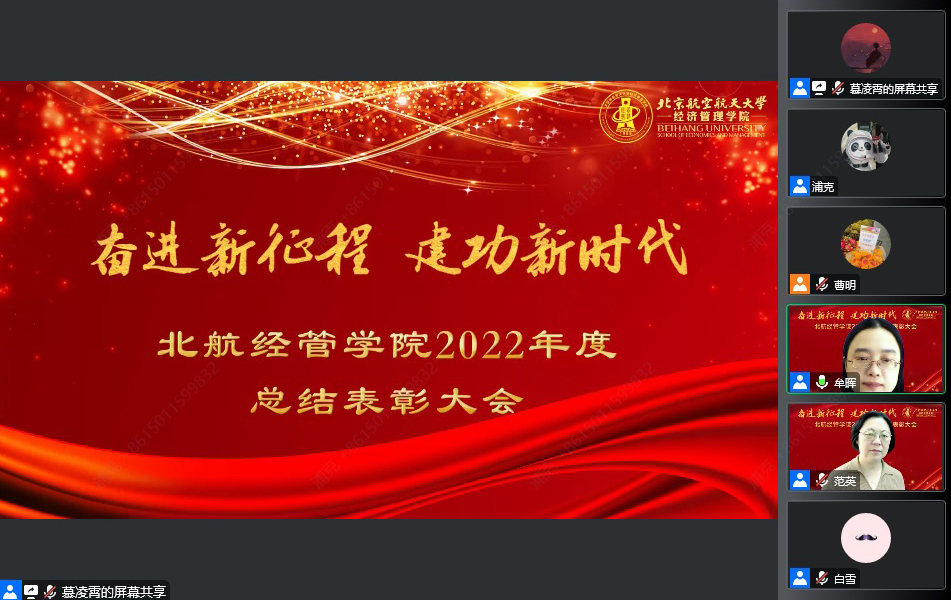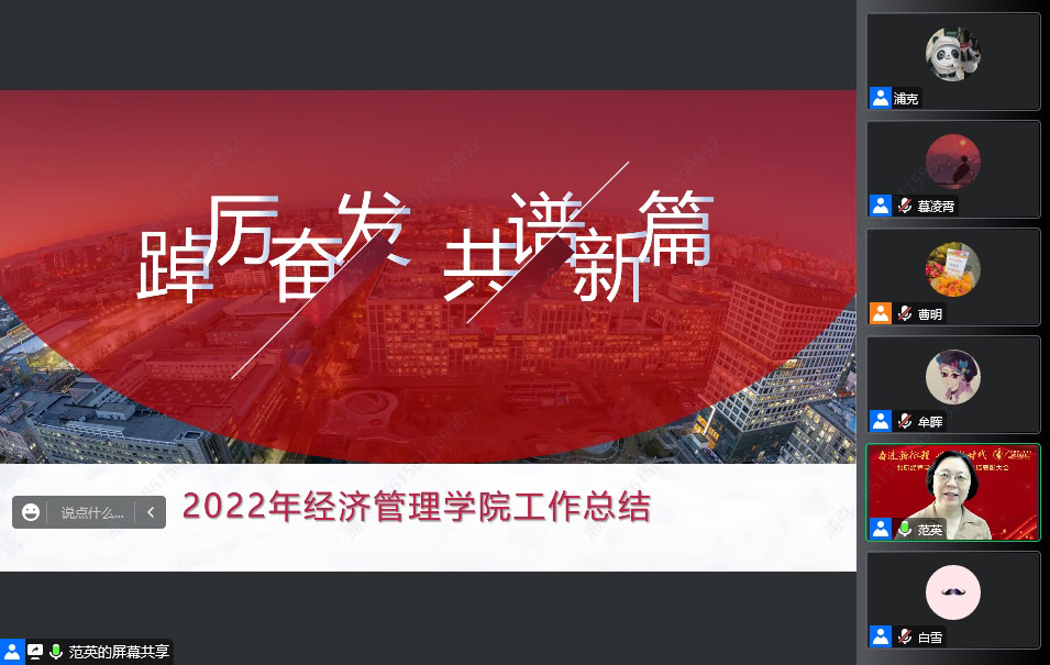 2023年1月6日,经济管理学院以视频会议的形式召开“奋进新征程,建功新时代”2022年度总结表彰大会。学院教职工、退休教师代表、学生辅导员等200余人参加了会议。会议由牟晖副院长主持。