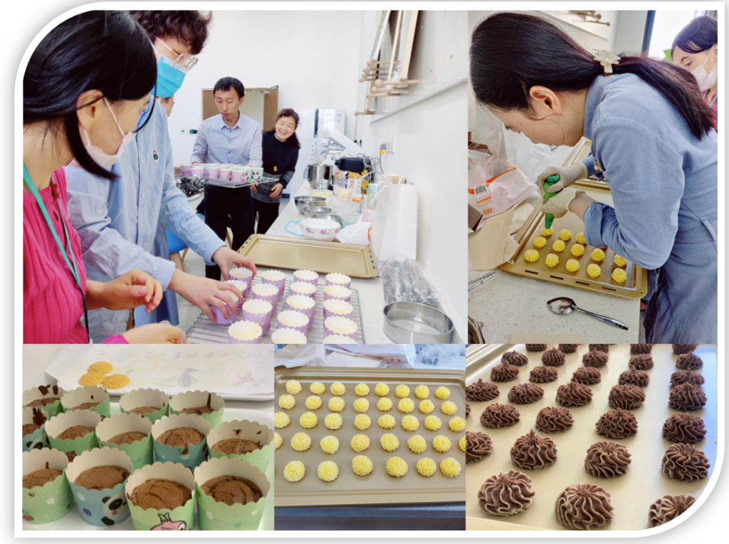首先,学院党委书记刘睿做简要发言,祝贺工会活动顺利举办,希望老师们积极参加文体娱乐活动,健康身体、愉悦心情、开心工作。随后青年教师李建宏宇用电子琴演奏了欢快乐曲烘托气氛。在快乐气氛中,翁惠焱老师带领一群烘焙迷弟迷妹,当场和面、打发、造型、烘焙,美味的蛋糕和点心源源不断地新鲜出炉了!老师们有的自由组合棋牌类切磋,有的尝试划船机比赛,有的表情投入地唱起卡拉OK,有的在轻松交流……