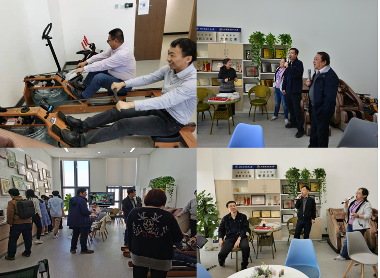 活动照片不断被发到学院群里,甜香的蛋糕味飘满楼道。引人极度舒适的甜品造型、现场活动的开心笑脸,吸引越来越多的老师们踊跃参加,沉浸在琴棋书画、卡拉OK、划船机等活动中,其乐融融。