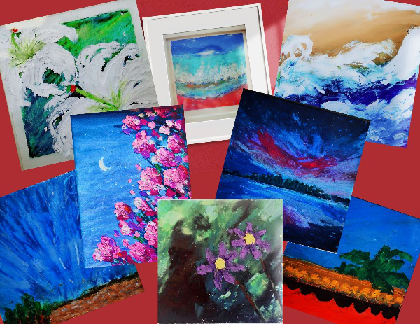 参加油画棒班的老师,深刻地感受到色彩具有影响人的心理、情绪和感觉的力量。被诸多偶发的烦心事打扰了一个上午的郭老师,在第一节课,教学老师指点画白色小花的时候,改成画深紫色小花。郭老师所有忧郁杂乱的情绪都随着小紫花在纸面上的绽放而散去。这节课之后,郭老师专门在此作品背面记下创作时的心境:在一地鸡毛中开出的两朵雏菊。在之后的几次课中,郭老师发现自己在每一幅作品的创作过程中,都能够通过油画棒的涂涂抹抹,尽情释放自己当天的情绪。