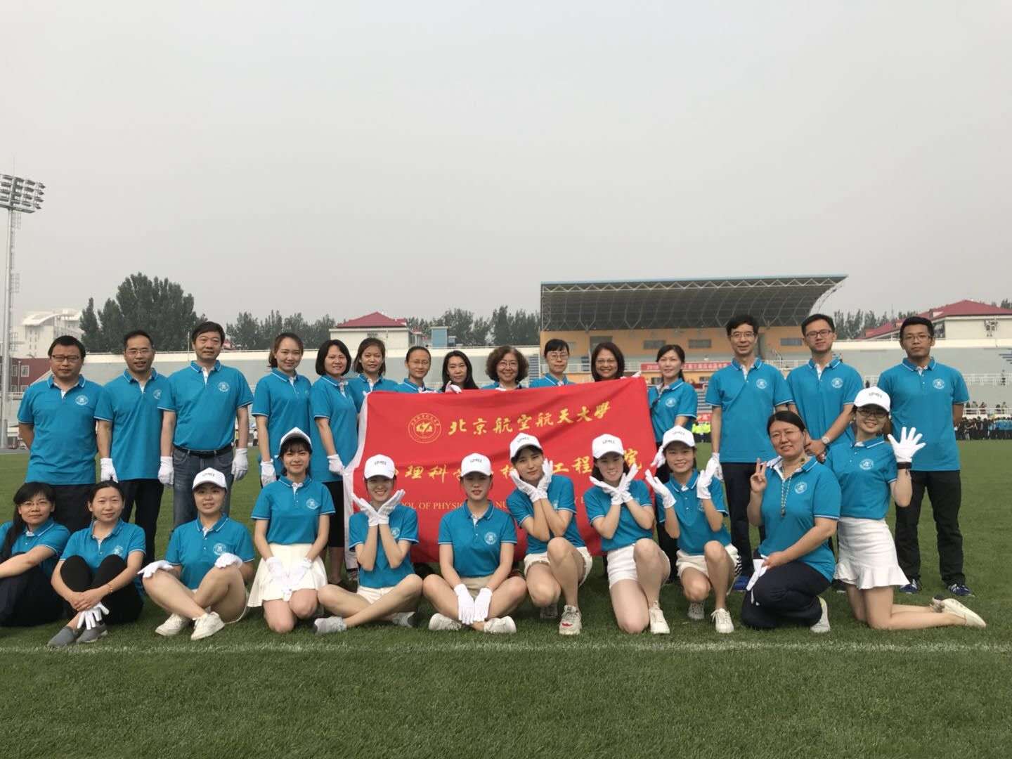 2018北航运动嘉年华暨教职工运动会于5月26日上午在北航体育场举行。物理科学与核能工程学院三十余名教职工代表在学院分党委书记王文文、工会主席邓胜华、工会副主席金硕带队参加了此次盛会。
