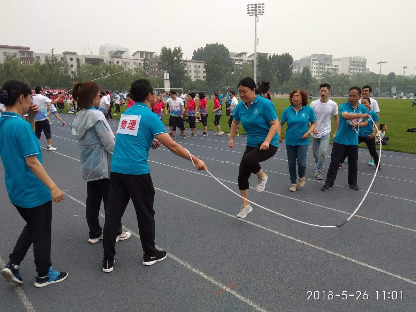 在本次教职工嘉年华运动会上,物理学院代表队充分展示了北航物理人热情积极、团结向上的精神面貌,这不仅仅是一次公平、有爱的体育比赛,一场悦动、欢乐的运动嘉年华,更是一场扬物理人气质,团结、奋进的物理人聚会!这个初夏的周末,物理学院的部分教师在运动场上拼搏展风采,赛场上大家汗流浃背,赛场上大家欢声笑语,赛场上大家气质非凡,赛场上大家超越自我!学院的有些教师还坚守在招生宣传、科研交流的战线上,虽然他们没有来到赛场,但是他们也在用自己的热情为物理学院的发展做出自己的贡献,这股正能量将继续凝聚和鼓舞所有北航物理人,为建设一流物理学科谱写出新的美好乐章。正所谓“格物穷理,自强不息,北航物理,力创辉煌”!