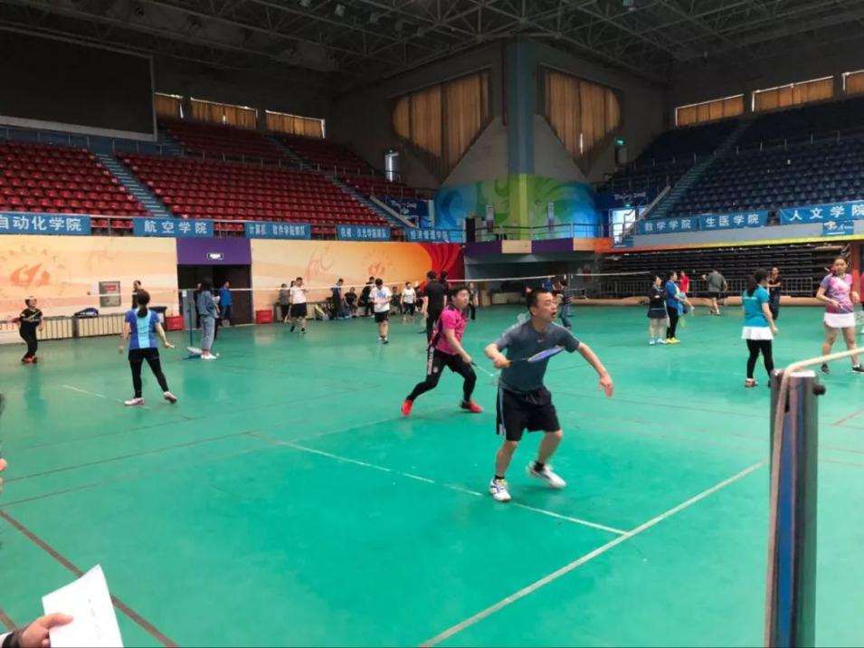 4月28日,北航教职工羽毛球团体赛在北航体育馆成功举行,全校共有22支队伍参加比赛,他们均派出精英团队进行激烈角逐。人文学院李亚梅书记、赵世奎副院长、工会胡庆江主席组织十余名教职工参加此次羽毛球比赛。