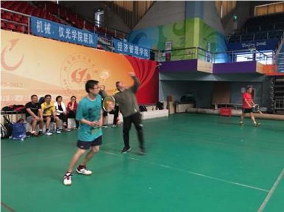 4月28日,在2018年教职工羽毛球团体赛中,外国语学院上下齐心,技术战术双管齐下,场上的顽强拼搏、不屈不挠,场下的密切观战、出谋划策,在高手如林的比赛中展示了外语人的精神和风采。