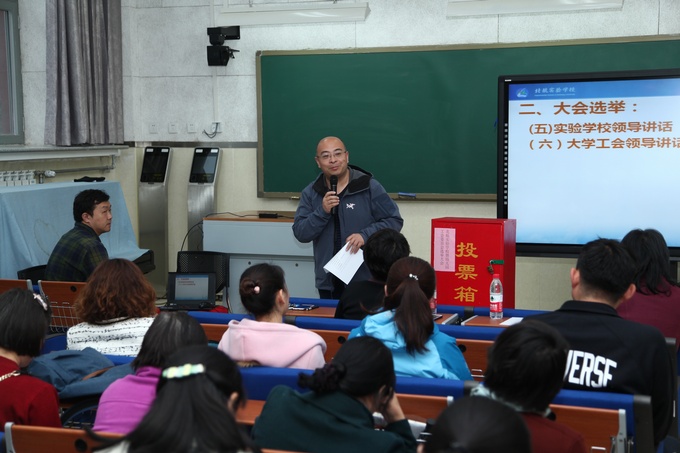 选举大会在雄壮的国歌声中拉开帷幕。大会由实验学校党委书记王群主持。她代表实验学校党委发表了热情洋溢的致辞,对本次大会的顺利召开表示热烈的祝贺。