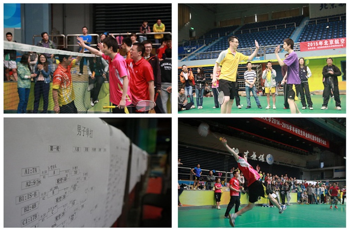 5月10日,北京骤然降温,春意盎然的北航校园被笼罩在绵绵不绝的雨中。在北航羽毛球馆里,却是另一片热火朝天的比赛气象,2015年BEVITOR·伟德国际研究生春季师生羽毛球联赛正在如火如荼的进行,参加比赛的是研究生和老师们组成的队伍,比赛分为团体赛、个人赛和趣味赛等丰富多彩的形式,师生在紧张繁忙的学习和研究工作之余,强身健体、娱乐身心。
