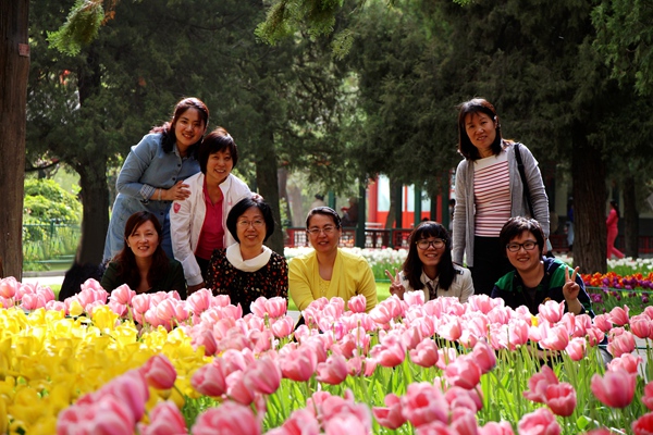 徜徉在林荫道上,细细的小路两旁,密密的郁金香花静静地盛开,芬芳扑鼻。老师们纷纷拿出各种拍照设备拍照留念,欢声笑语溢满古老的园林。老师们都表示感谢工会组织的这类活动,对加强老师之间的沟通,增进教师之间的感情,有积极的推动作用。