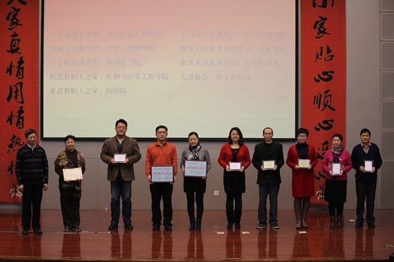 经管学院工会主席谢岚、青年委员杨捷等老师代表学院参加了会议。经管学院工会在学校工会和学院分党委的领导和支持下圆满完成了2014年度各项日常工会工作,并在关心关爱教职工、助力青年教师全面发展、学院运行经费预算决算监督等方面做出了突出的成绩,荣获了工会工作组织一等奖、工会特色活动奖和工会宣传先进单位等集体奖项,以及教职工之友、优秀工会主席、教代会提案工作先进个人和工会工作先进个人等个人奖项。学院工会对一直关心和支持工会工作的学校和学院领导、各位教职工表示衷心的感谢!