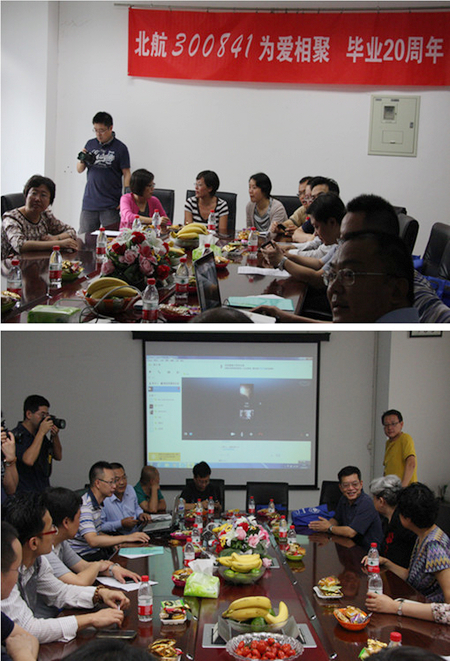 2014年9月6日9时30分在北航新主楼A座612,北航经管学院1990级300841班20名校友本科毕业20周年重返母校,为爱相聚!聚会邀请了经管学院的杨念梅老师、孙红老师及当年300841班的辅导员许雄斌老师,大家欢聚一堂共叙师生情、同窗谊。