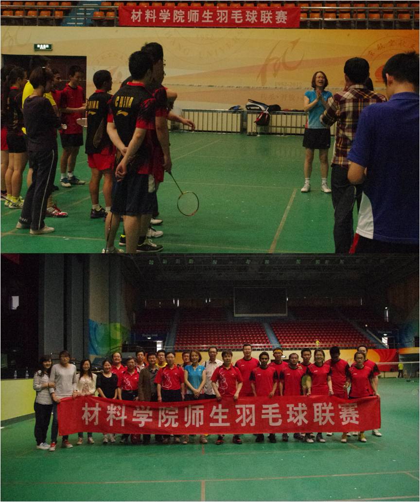 为了庆祝五四青年节,材料学院党政及工会联合材料学院研究生会共同举办首届材料学院师生羽毛球赛。师生羽毛球赛如期在体育馆主馆进行,本次比赛分老师队和学生队两支队伍进行比赛。