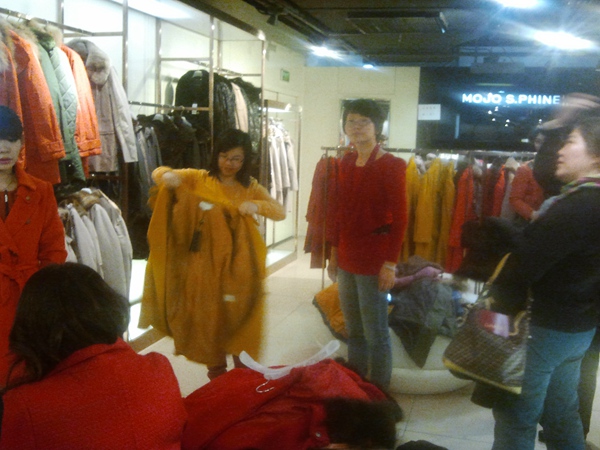 女教工们来到朗姿服装展厅,零距离接触国际名品的时尚与潮流,亲身体验到北京十大时装品牌的魅力,纷纷试穿及选购时尚的外衣。