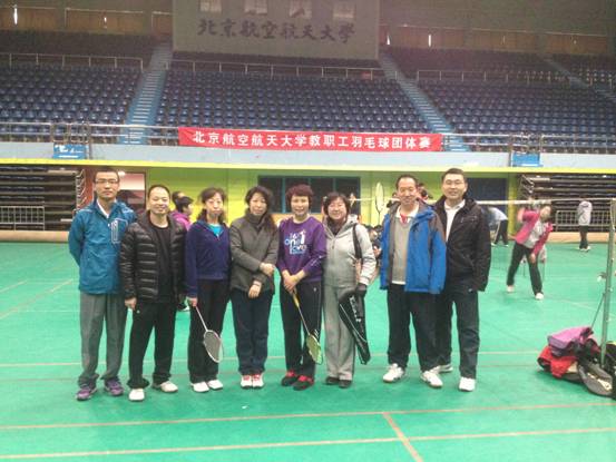 2013年11月23日,由校工会主办的北航2013年全校教职工羽毛球混合团体比赛在体育馆主馆举行。20个学院代表队(包括4个联合学院组队)分为A、B、C和D组进行循环赛,每组出线前两名晋级淘汰赛。每场小组比赛进行五项比赛,出场顺序依次为男双、女双、混双,男双、女双,参赛队员不允许兼项。每项比赛三局两胜,每局11分,先赢三项的代表队为获胜队。