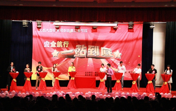 北航“安全文化月”活动旨在通过多渠道全方位立体式教育引导,校园安全文化逐渐深入人心,为创建平安和谐校园提供了助力。今年“安全文化月”的“安全航行•一站到底”大型安全知识竞赛活动吸引了近千人参与网上答题,经过层层选拔,最终选拔出11位优秀选手参加6月6日晚的总决赛。决赛当晚,参赛的老师和同学们踊跃答题,比赛精彩纷呈,通过10轮精彩的对决,经管学院的杨捷老师最终获得“安全知识竞赛挑战优胜者”称号。