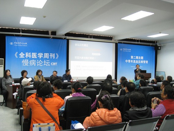 2012年11月7日下午,中国医学论坛报全科医学周刊第二期慢病论坛在北航校医院举行。此次论坛以“中青年高血压病管理”为主题,由中国医学科学院阜外心血管病医院顼志敏教授主持,特邀北航校医院副院长王丛妙和北京军区总医院副教授张健做点评专家。专家们结合病例讨论,详细讲解了中青年高血压的诊断要点、诊断思路,并指出,中青年高血压须重视,其并发症是致死的主要危险因素,社区医生在治疗过程中,还须个体化用药,以患者为本,重视双心治疗。此次讲座共有近200名社区居民和社区医院医务工作者参加,现场气氛热烈,大家与专家积极互动,探讨了日常诊断中常见的各种病征和治疗方法,既有利于社区居民对高血压做到早预防早治疗,又有利于社区医生提高对中青年高血压的诊治水平。