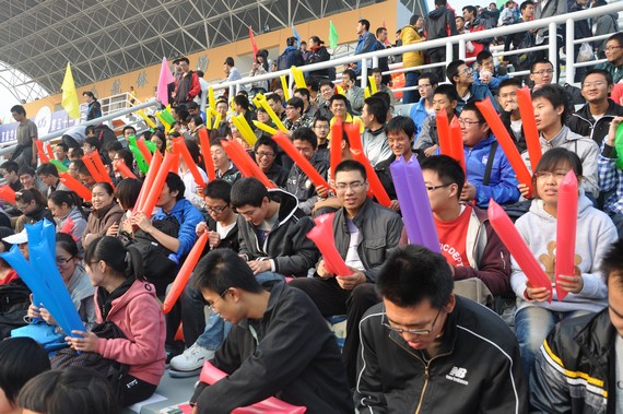场上紧张竞技的同时,看台上学院的观众们同样是运动场上的一抹亮色,他们手持啦啦棒,为学院运动员的每一次拼搏喝彩,场上场下密切呼应,显现了生医学院强大的凝聚力。
