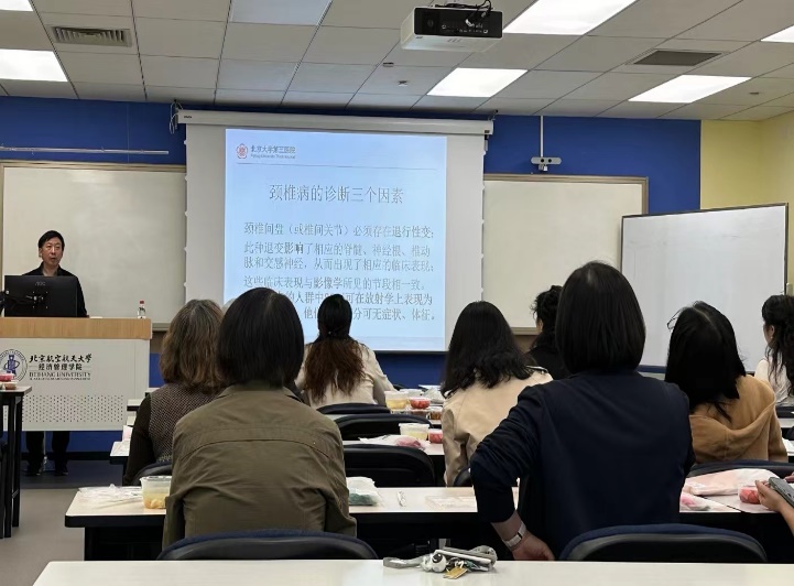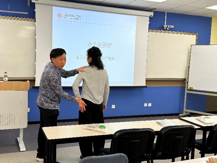 活动特别邀请了北京大学第三医院中医科副主任、针灸学博士霍则军主任医师,为教职工详细讲解了办公室常见的健康隐患。随着科研压力加大和长时间伏案工作的增加,颈椎病、腰椎病、胃病、视疲劳等问题困扰着许多教职工。针对这些问题,霍大夫结合丰富的临床经验,提供了专业的预防建议,并教授了简便实用的按摩手法和艾灸等传统疗法,帮助大家在繁忙的工作中科学调理身体,提升生活质量。