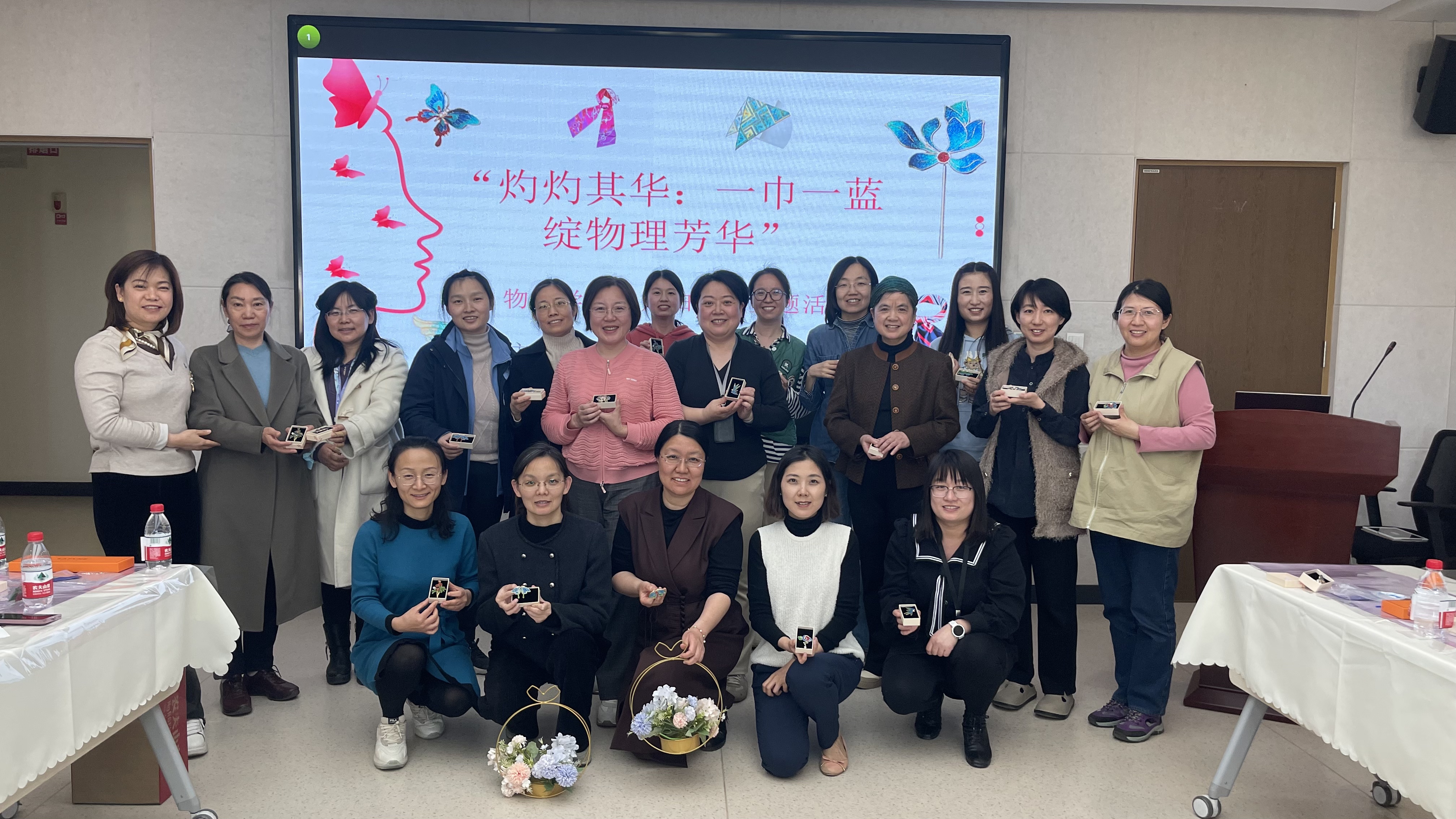为全力支持教师们冲刺国家自然科学基金项目申报,物理学院工会将“灼灼其华:一巾一蓝绽物理芳华”为主题的三八妇女节活动推迟至3月19日下午2点在学院会议室C511举行。活动由院工会主席金硕主持,旨在以“学术/教学优先、暖心护航”的方式向为物理学院发展做出卓越贡献的女性同仁致以敬意。40余位教师暂时放下手中的工作,沉浸式体验“丝巾美学+非遗手作”的艺术疗愈之旅,以适度放松的节奏为科研和教育教学征程注入新活力。