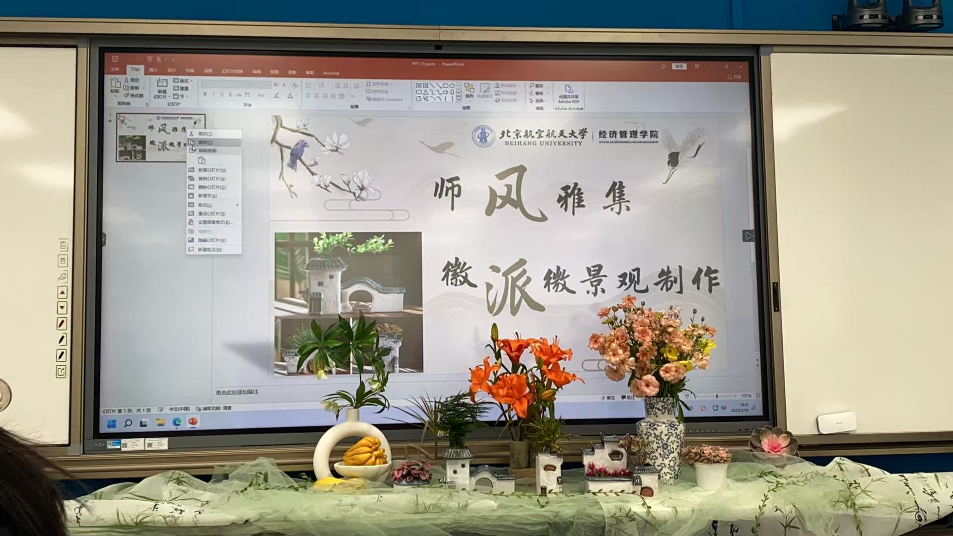 活动伊始,经管工会副主席任晖老师向大家介绍了徽派微景观的创作理念及制作技巧。徽派建筑素以粉墙黛瓦、马头墙、错落有致的园林景观著称,与微景观艺术相结合,不仅能够营造富有诗意的桌面生态,也让大家在亲手创作中体悟徽派美学的独特韵味。