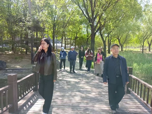 活动人数最多的路线是元大都遗址公园,公园静静流淌的小溪、春色满园的意境吸引着老师们。大家充分利用午休闲暇时间,释放排解各方面压力,怀着轻松愉快的心情,三五成群,彼此鼓劲,他们有的谈笑风生,有的交流健康知识,轻松的氛围里有点点小热闹。