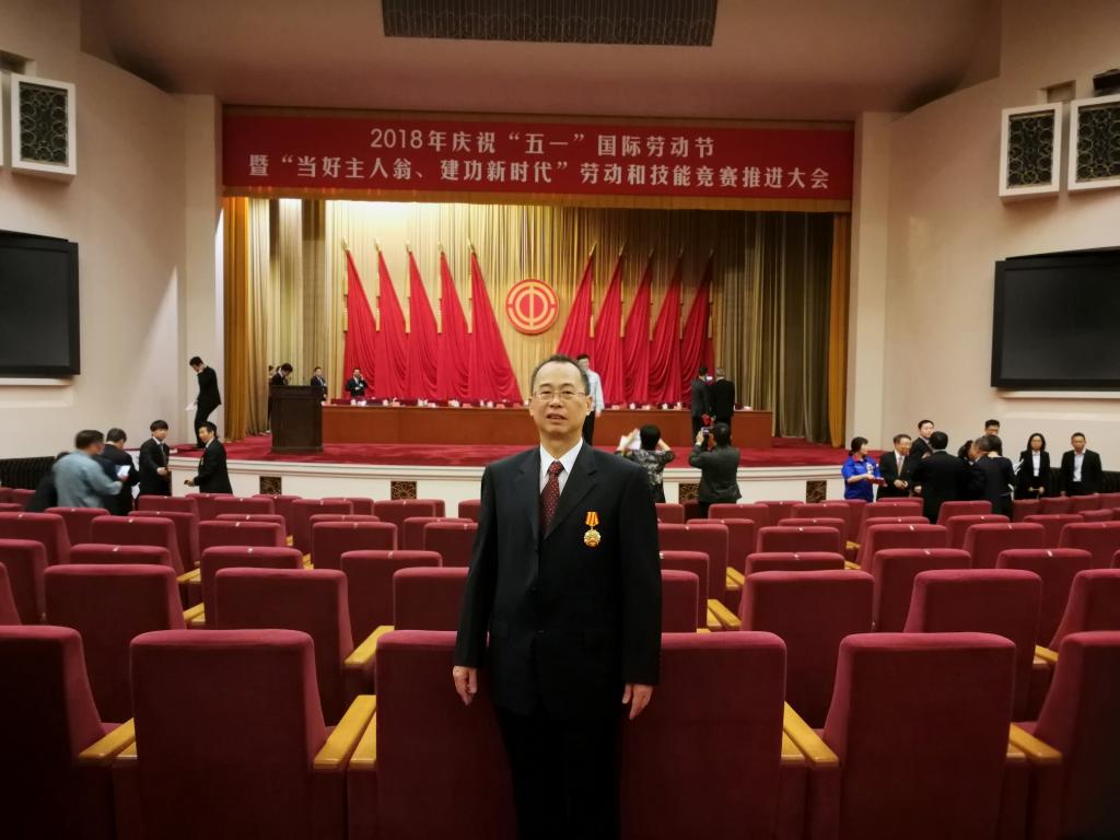 北航新闻网4月28日电(通讯员 夏菊萍/文 韩思愉/摄影)4月28日上午,庆祝“五一”国际劳动节暨“当好主人翁、建功新时代”劳动和技能竞赛推进大会在北京人民大会堂举行。全国人大常委会副委员长、中华全国总工会主席王东明出席并讲话。我校向锦武教授荣获“全国五一劳动奖章”。